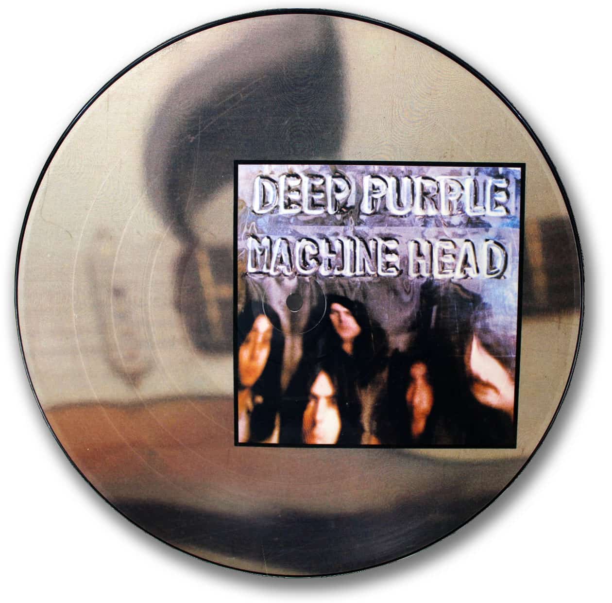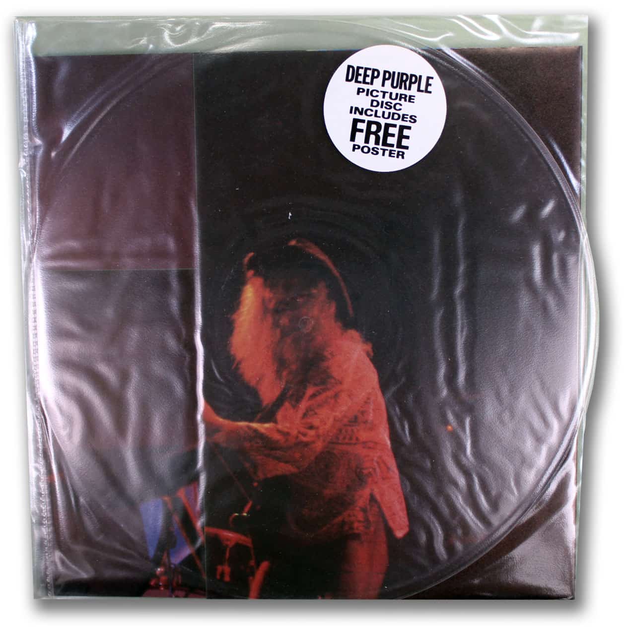 This was Deep Purple’s forth release on vinyl and their third picture disc. “Machine Head”, a product of the United Kingdom, was also the last of the “pocket sleeved” discs. On one side of the bi-fold sleeve was a circular clear vinyl pocket which contained the disc. On the other side was a square pocket which housed a folded poster.