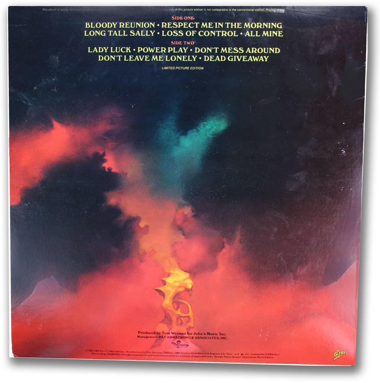 This disc is an extended play copy of Van Halen’s first album. It contains 5 songs and is commonly referred to as the “Looney Tunes” disc because of the label displaying Elmer Fudd and Looney Tunes.