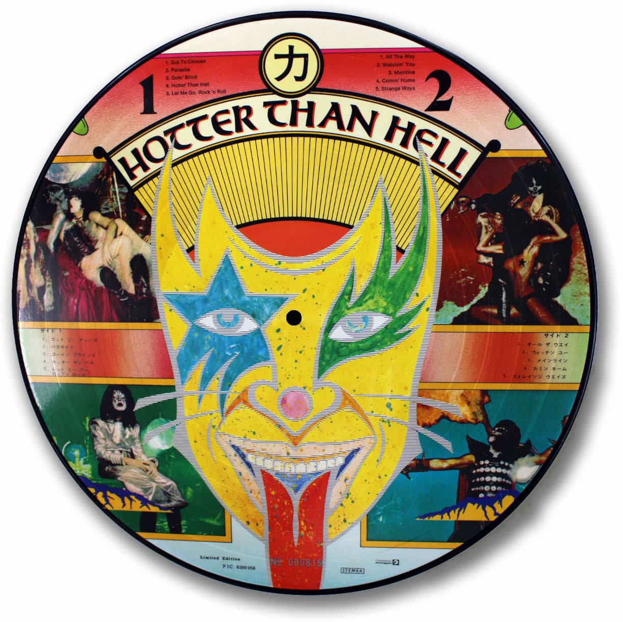 “Hotter than Hell” was the second release from this band. Originally released on regular vinyl in November of 1974 by Casablanca Records. There were approximately 1500 copies of this picture disc released. Each were individually numbered.