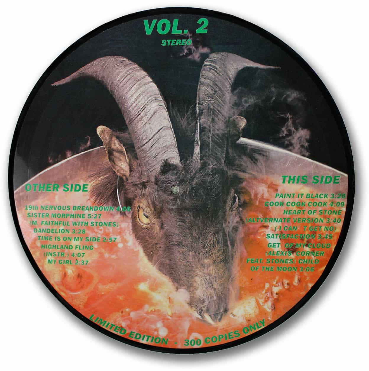 It does contain a number of great songs along with a photo of a goats head on the flip side.