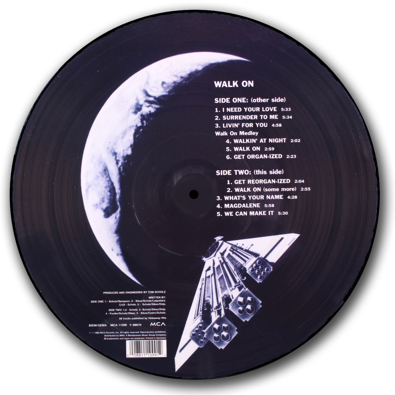 Boston’s forth and final album. By now Tom Scholz was the only member of the original lineup to appear with the band. The “Walk On” picture disc was pressed in Germany. As with “Don’t Look Back”, this LP is extremely difficult to locate.