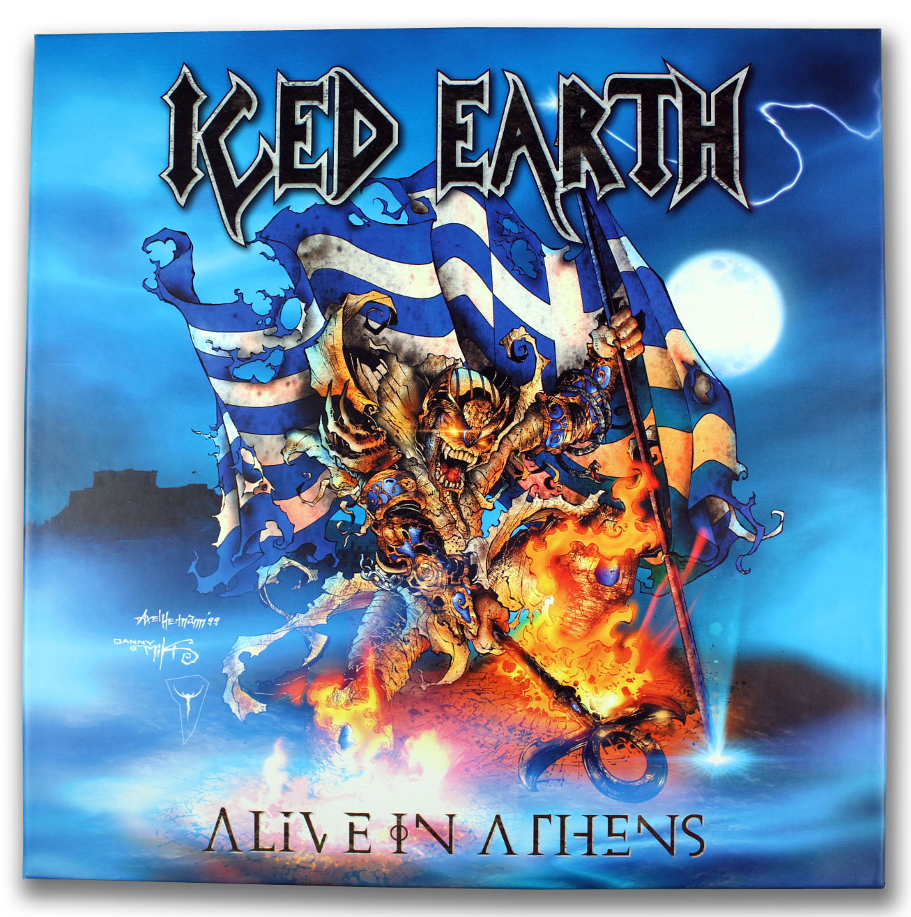 These five pressings, were released to commemorate the live performance of Iced Earth on January 23rd and 24th 1999 in Athens,Greece. Contained within this “box set” of five discs are 31 songs which Iced Earth performed over two sold-out shows in front of 5,000 people. Also found, is a large color poster containing art work and images if the five album cover art. These discs were manufactured in Germany with a limited pressing of around 2000 copies.