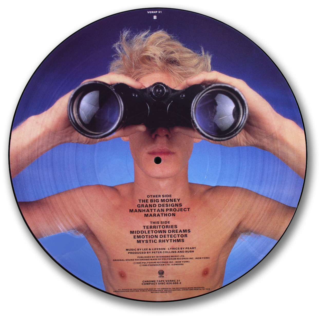 This particularly nice disc was printed and pressed in the United Kingdom. As far as picture discs are concerned, this album is extremely popular with Rush fans and collectors. It is also very difficult to obtain.