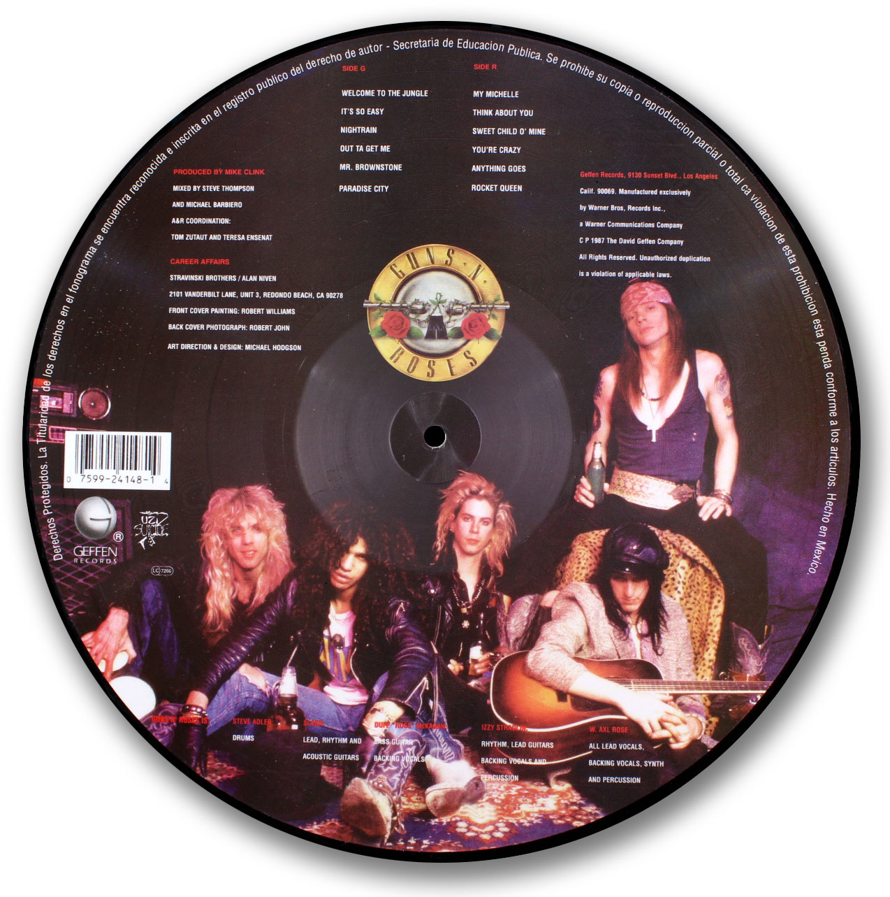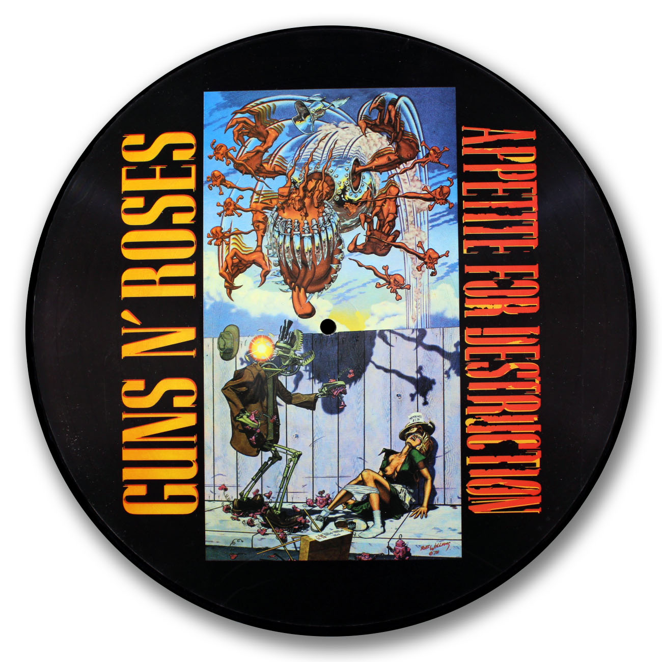 This was the debut album for Guns N’Roses. It went on to sell over 20 million copies and established Guns N’Roses as a major force within the Metal scene. This disc displays the controversial cover of a woman being raped by a robot. Because of the uproar, the image was quickly replaced with another.