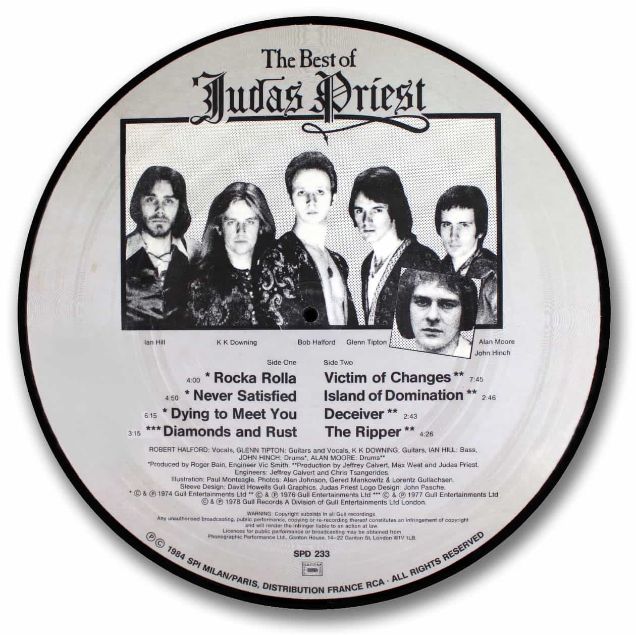 This disc contains a number of great Priest tunes. Printed and pressed in France by SPI/Milan “The Best of..” was also issued in the United Kingdom by Gull Records and limited to 5,000 copies.