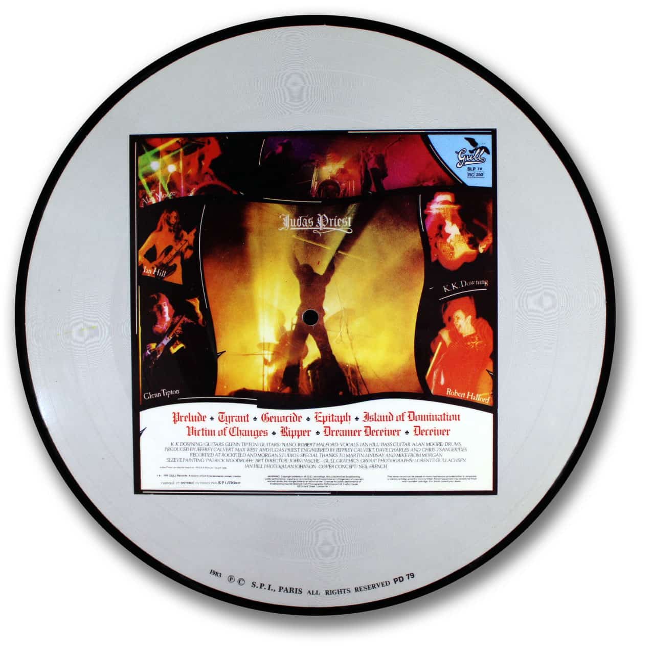 This was the second release for Judas Priest and contains early material such as “Tyrant”,”Victim of Changes”, and “Island of Domination”. Printed and pressed in France under license from Gull Records.<