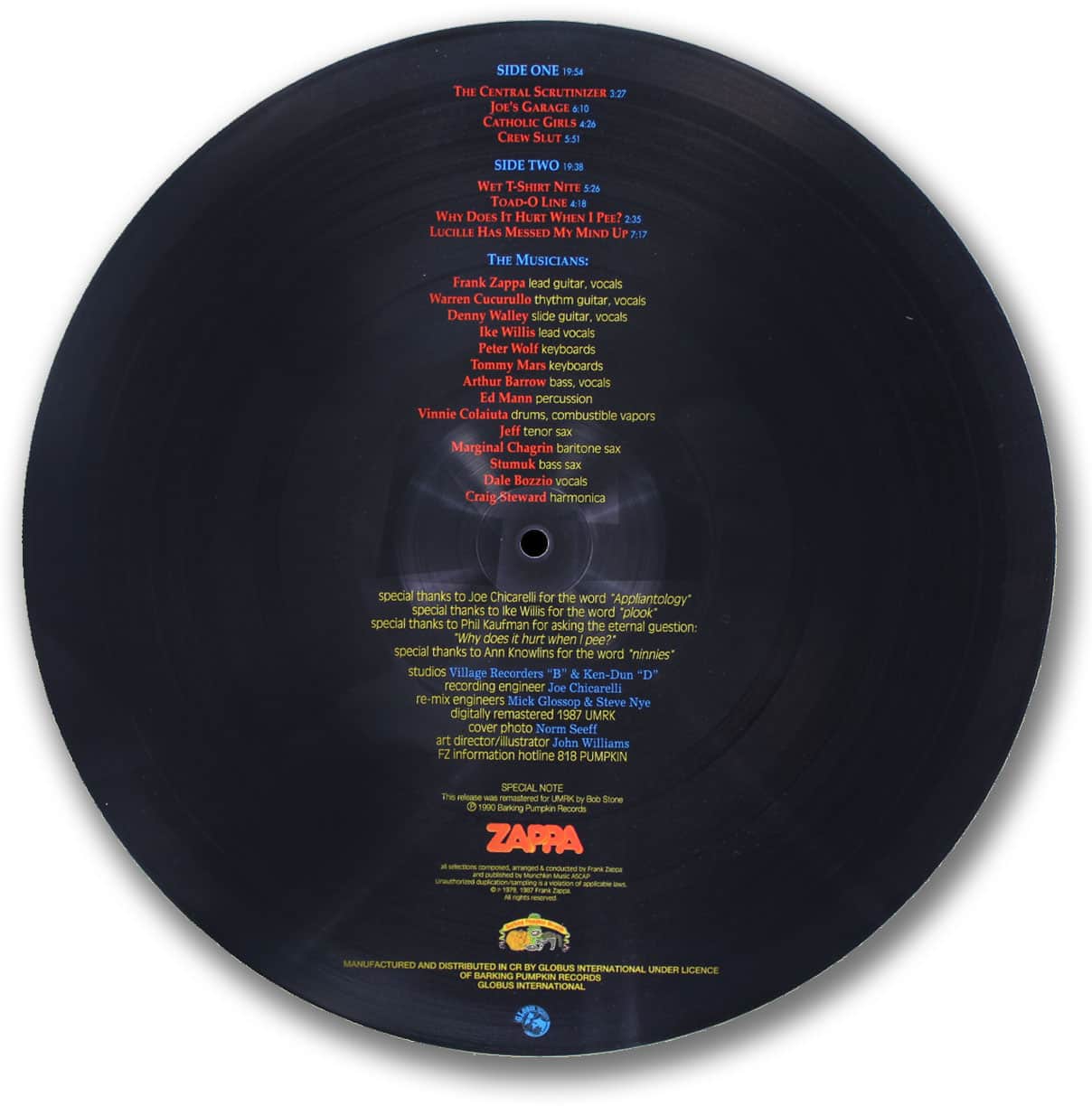 Contains some of Zappa’s most outlandish tracks including “Catholic Girls”, “Wet T-Shirt Nite” and “Why Does It Hurt When I Pee?”. The record comes in a full color gatefold sleeve and is accompanied by a lyric sheet. This disc had a pressing of 1,000 copies and is a product of the Czecho and Slovakia Federation Republic.