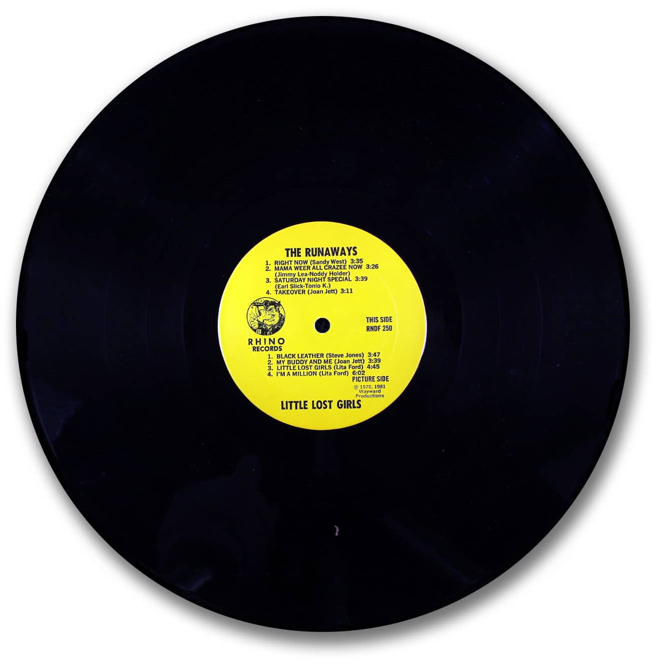 This is Side “A” of the disc. It was recorded as a demo prior to the Starz first album, then re-recorded for that album. The image of the woman is that of Richie Ranno’s wife. It was taken from a photo by Ron Akiyama. These discs are individually numbered with this being 467 of 500. There is no official date to this disc.