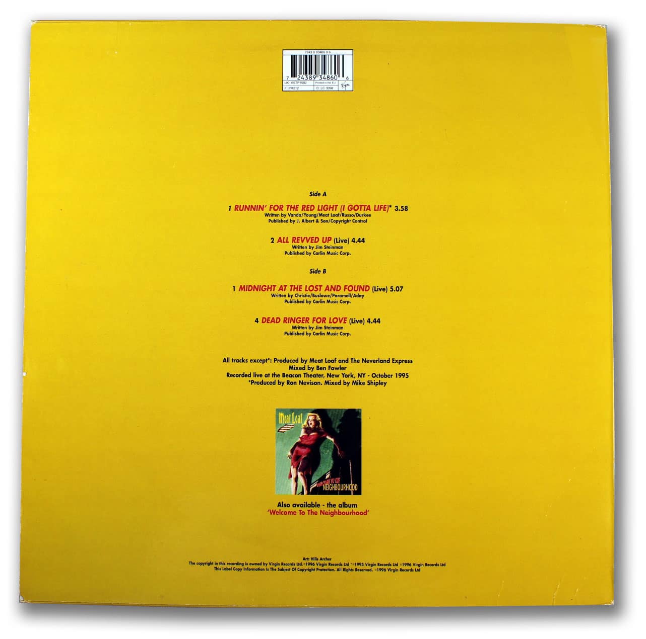 This disc contains four songs. Three of the songs were recorded live at the Beacon Theater in New York City in October of 1995. The forth track “Runnin’ For The Red Light”, appears on the album “Welcome to the Neighbourhood”.