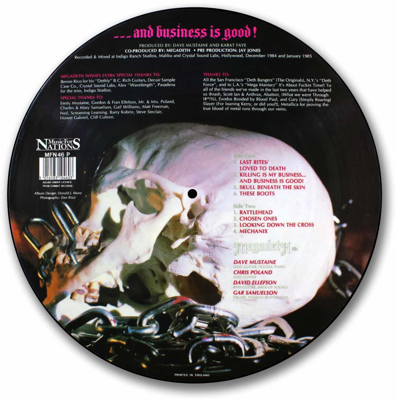 Artist: Megadeth Album: Killing is My Business.. ..And Business is Good! Release Date: 1990 Catalog number: Music For Nations MFN46 P
